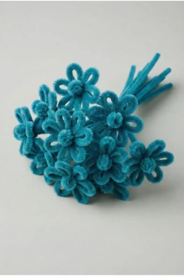 100 Adet Turkuaz Şönil 30cm, Tüylü Peluş Kadife Tel, El İşi, Çiçek, Hediye, Süsleme, Okul, Etkinlik