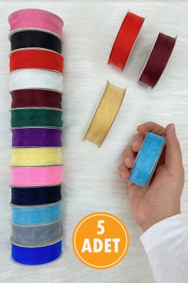 5 Adet Organze Tül Kurdele Karışık Renk 2cm 22mt, Bohça, Çeyiz, Hediye, Paketleme, Süsleme, Nikah