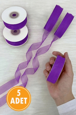5 Adet Organze Tül Kurdele Lila 2 cm 22 mt, Bohça, Nişan, Çeyiz, Hediye, Paketleme, Süsleme, Nikah