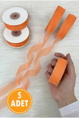 5 Adet Organze Tül Kurdele Somon 2 cm 22 mt, Bohça, Nişan, Çeyiz, Hediye, Paketleme, Süsleme, Nikah