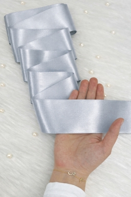 6 Cm Açık Gri Çift Taraflı Saten Kurdele 10 Metre, Bohça Çeyiz Nişan Takı Özel Gün Hediye Süsleme