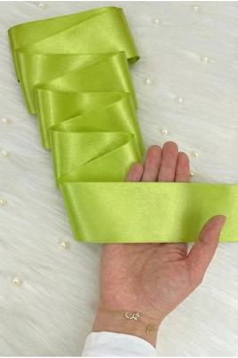 6 Cm Fıstık Yeşili Çift Taraflı Saten Kurdele 10 Metre, Bohça Çeyiz Nişan Özel Gün Hediye Süsleme