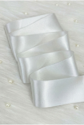 6 Cm Kırık Beyaz Çift Taraflı Saten Kurdele 10 Metre, Bohça Çeyiz Nişan Takı Özel Gün Hediye Süsleme