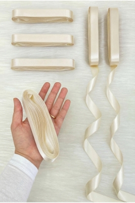 Açık Krem Saten Kurdele 2 Cm 10 Metre, Bohça Çeyiz Nikah Kına Sünnet Doğum Günü Parti Hediye Süsleme
