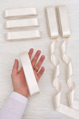 Açık Krem Saten Kurdele 3cm 10mt, Bohça Çeyiz Nikah Kına Sünnet Söz Doğum Günü Parti Hediye Süsleme