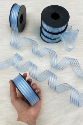Bebe Mavi Hilton Çizgili Şifon Kurdele 2,5 cm 20 mt, Gelin, Bohça, Nişan, Çeyiz, Hediye, Süsleme