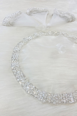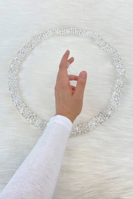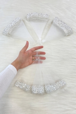 Beyaz Gelin Damat Mendili, İnci, Pul Ve Cam Boncuk İşlemeli, Düğün Kına Sünnet Söz Nişan Halay