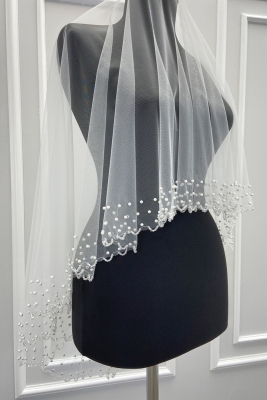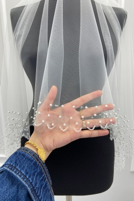 Beyaz Gelin Işıl Işıl Kristal Boncuk Ve Incili Kına Duvağı, Gelinlik, Düğün, Nikah Aksesuarı