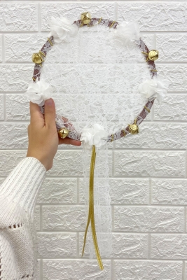 Beyaz Gelin Nedime Tefi Dantel 3D Süslemeli, Düğün Kına Sünnet Bride To Be
