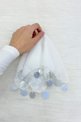 Beyaz Gümüş Şifon Halay Mendili 10 Adet, Gelin Damat Düğün Kına Sünnet Nişan Bride