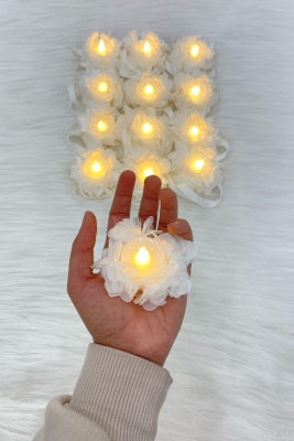 Beyaz Ledli Kına El Mumu, Düğün, Nedime, Bride, Sünnet, Led Işıklı, Tealight Mum Pilli 12 Adet