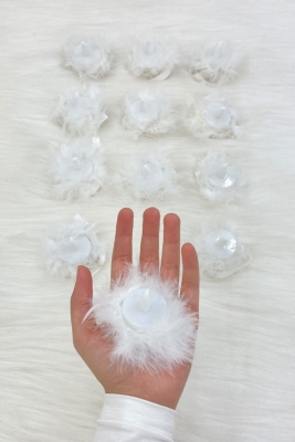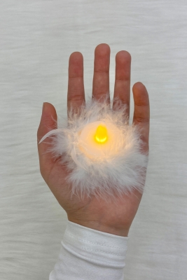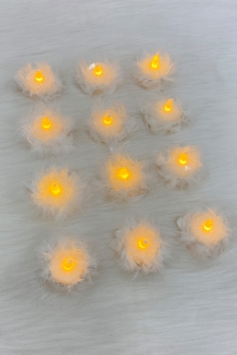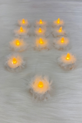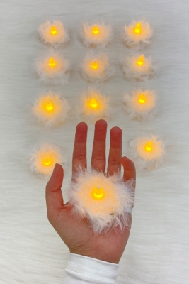 Beyaz Ledli Kına El Mumu, Düğün, Nedime, Bride, Sünnet, Led Işıklı, Tealight Mum Pilli Tüylü 12 Adet