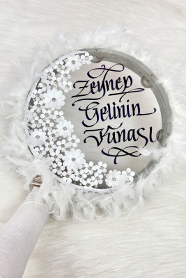 Kına Gecelerinin Vazgeçilmezi İsme Özel Kaligrafi Sanatlı 32 cm Şeffaf Zemin Üzeri Ledli (Üç Fonksiyonlu) Zilli Üç Boyutlu Çiçek Parlak Taş İnci Otriş Süslü Gelin Tefimiz.; ; ; Ledimiz Üç Fonksiyonlu Olup Videodan Ayrıntılı Olarak İnceleyebilirsiniz.; ; Bu ürün ZEYMERADE markası için ÜNLÜ KALİGRAFİ SANATÇISI Murat Demirağ TARAFINDAN BİZZAT yazılmaktadır.; ; Yılların Deneyimi, Alanında Uzman Kaligrafımız ve Size Özel Hazırlanan Tefimizle Bu Özel Gününüzde Yanınızda Olmaktan Mutluluk Duyarız.; ; Renk: Beyaz ; ; Sipariş Sonrası İlk 5 Dakika İçinde Sipariş Sorularımdan yada Satıcıya Sor Kısmından Yazılacaklar: Sipariş No ve Yazılacak Tam Metin (gelin, kına, kına gecesi, sünnet, sünnet hatırası, tarih, damat ismi vs gibi) ; ; Gelin Duvak Seti, Kına Gecesi, Düğün, Nikah, Nişan, Söz, Bekarlığa Veda Partisi, Bride To Be Set, Çeyiz, Bohça Süsü, Konvoy Süsü, Damat, Nedime, Sağdıç, Henna Night, Wedding, After Parti Malzemeleri, Sünnet Örtüsü ve Malzemeleri, Kına Mevlüt, Baby Shower, Süsleme Ürünleri, Kına Duvağı, Damat Şalı, Kına Şalı, Damat Omuz Örtüsü, Kına Örtüsü Alı Yüz Örtüsü, Malzemeleri, Aksesuarları İçin Satıcı İsmine Tıklayarak Mağazamızı Ziyaret Edebilirsiniz.;İlgili Ürünler