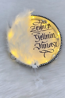 Kına Gecelerinin Vazgeçilmezi İsme Özel Kaligrafi Sanatlı 32 cm Şeffaf Zemin Üzeri Ledli (Üç Fonksiyonlu) Zilli Tüylü Üç Boyutlu Çiçek Saten Kurdele Süslü Gelin Tefimiz.; ; ; Ledimiz Üç Fonksiyonlu Olup Videodan Ayrıntılı Olarak İnceleyebilirsiniz.; ; ; Bu ürün ZEYMERADE markası için ÜNLÜ KALİGRAFİ SANATÇISI “ Murat Demirağ” TARAFINDAN BİZZAT yazılmaktadır.; ; Yılların Deneyimi, Alanında Uzman Kaligrafımız ve Size Özel Hazırlanan Tefimizle Bu Özel Gününüzde Yanınızda Olmaktan Mutluluk Duyarız.; ; Renk: Beyaz ; ; Sipariş Sonrası İlk 5 Dakika İçinde Sipariş Sorularımdan yada “Satıcıya Sor“ Kısmından Yazılacaklar: Sipariş No ve Yazılacak Tam Metin (gelin, kına, kına gecesi, sünnet, sünnet hatırası, tarih, damat ismi vs gibi) ; ; Gelin Duvak Seti, Kına Gecesi, Düğün, Nikah, Nişan, Söz, Bekarlığa Veda Partisi, Bride To Be Set, Çeyiz, Bohça Süsü, Konvoy Süsü, Damat, Nedime, Sağdıç, Henna Night, Wedding, After Parti Malzemeleri, Sünnet Örtüsü ve Malzemeleri, Kına Mevlüt, Baby Shower, Süsleme Ürünleri, Kına Duvağı, Damat Şalı, Kına Şalı, Damat Omuz Örtüsü, Kına Örtüsü Alı Yüz Örtüsü, Malzemeleri, Aksesuarları İçin Satıcı İsmine Tıklayarak Mağazamızı Ziyaret Edebilirsiniz.; ;İlgili Ürünler