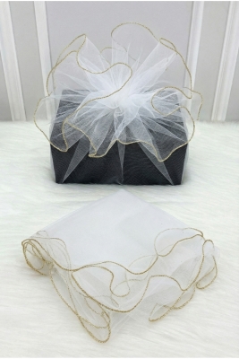 Beyaz Süsleme Tülü Gold Kenarlı, Bohça Çeyiz Gelin Damat Söz Nişan Nikah Valiz Hediye Süsü 100x100cm