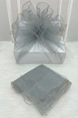 Bohça Süsleme Tülü Gri, Gold Overlok Kenar, Çeyiz Gelin Damat Nişan Valiz Hediye Süs 150x150cm