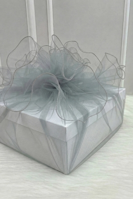 Bohça Süsleme Tülü Gri, Gri Overlok Kenar, Çeyiz Gelin Damat Nişan Valiz Hediye Süs 150x150cm