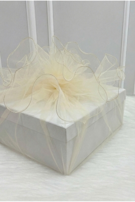 Bohça Süsleme Tülü Krem, Gold Overlok Kenar, Çeyiz Gelin Damat Nişan Valiz Hediye Süs 150x150cm