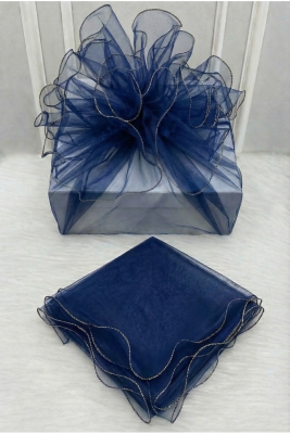 Bohça Süsleme Tülü Lacivert, Gold Overlok Kenar, Çeyiz Gelin Damat Nişan Valiz Hediye Süs 150x150cm