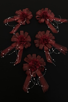 Bordo Bohça Süsü, Gelin Damat Çeyiz Düğün Nişan Konvoy Gelin Arabası Sünnet Kına Süsü 5 Adet