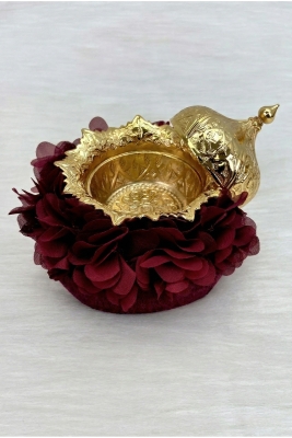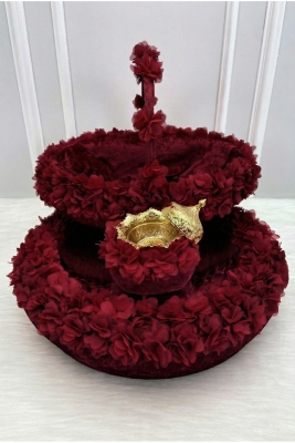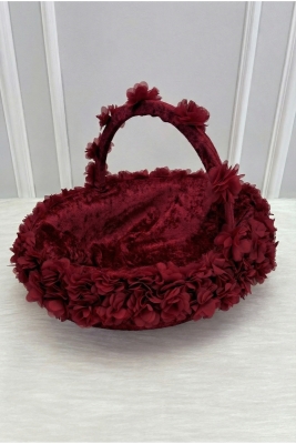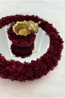 Bordo Çiçekli Aynalı Kadife Kına Gecesi Tepsi Sepet Gelin Takımı, Nişan Nikah Düğün Söz Sünnet