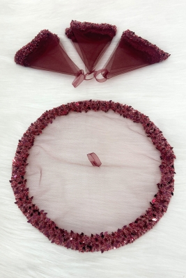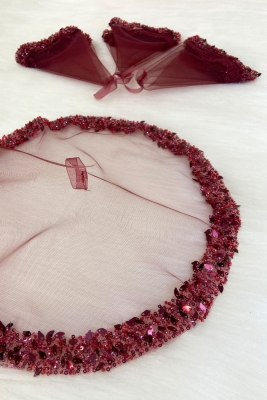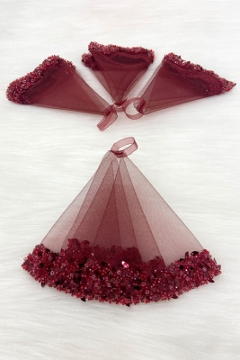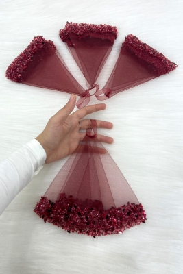 Bordo Gelin Damat Mendili, Halay El Mendili, Pullu Boncuklu Yaprak Desenli, Düğün Kına Sünnet Nişan