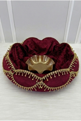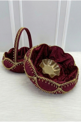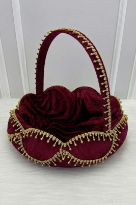 Bordo Gelin Kına Gecesi Tepsi Sepet Takımı, Kadife Parlak Taş Süslemeli, Nişan, Nikah, Düğün, Söz
