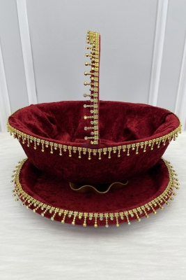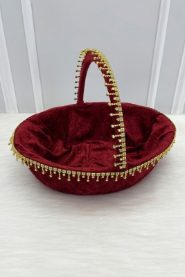 Bordo Gelin Kına Gecesi Tepsi Ve Sepeti, Lüks Parlak Taşlı Kadife, Düğün, Sünnet, Nişan, Söz