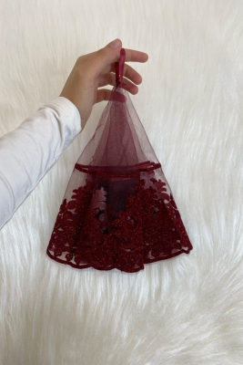 Bordo Gelin Mendili, Düğün Halay Mendili, Simli Flok Baskılı Kına Mendili 5 Adet