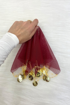 Bordo Gold Pullu Tül Halay Mendili 5 Adet, Gelin Damat Düğün Kına Sünnet Söz Nişan Bride
