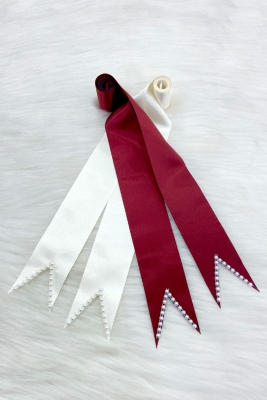Bordo Krem İncili Gelin Damat Takı Kurdele; Düğün Söz Nişan Nikah Sünnet Kına Gecesi Takı Kemeri