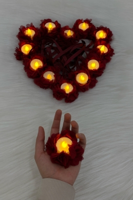 Bordo Ledli Kına El Mumu, Tealight Mum Pilli 6 Adet, Sünnet, Led Işıklı, Düğün, Nedime, Bride