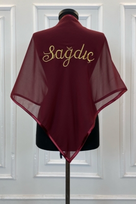 Bordo Şifon Sağdıç Omuz Örtüsü Şalı, Damat Sağdıç Asker Kına Örtüsü