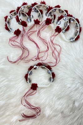 Bordo Süslü Gelin Nedime Kına Gecesi Tefi, Üç Boyut Lazer Çiçek ve Kurdele Detaylı Tef 1 Adet