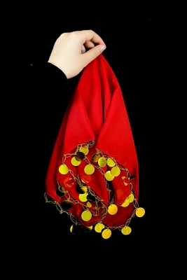 Büyük Boy Şifon Halay Mendili 50x50cm Kırmızı Gold 1 Adet Gelin Damat Düğün Kına Sünnet Söz Bride