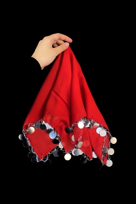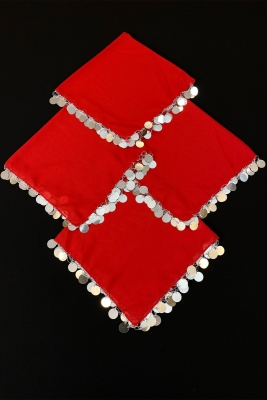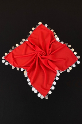 Büyük Boy Şifon Halay Mendili 50x50cm Kırmızı Gümüş 1adet Gelin Damat Düğün Kına Sünnet Söz Bride