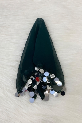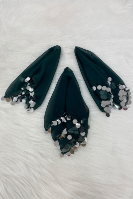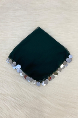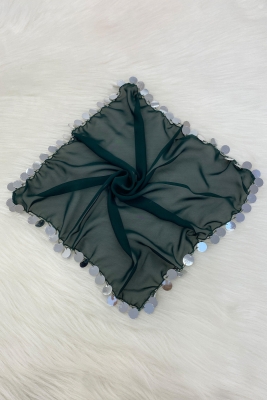 Büyük Boy Şifon Halay Mendili, 50x50cm Yeşil Gümüş 1 Adet, Gelin Damat Düğün Kına Sünnet Nişan Bride