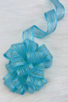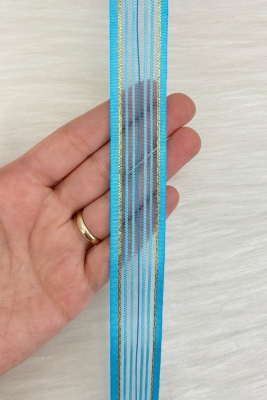 Çekmeli Şifon Kurdele Mavi Gold Sim 2,5cm 20mt, Gelin, Bohça, Çeyiz, Nişan, Hediye, Süsleme