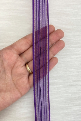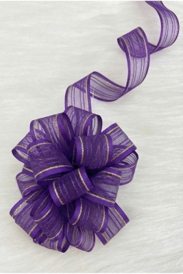 Çekmeli Şifon Kurdele Mor Gold Sim 2,5cm 20mt, Gelin, Bohça, Çeyiz, Nişan, Hediye, Süsleme