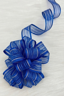 Çekmeli Şifon Kurdele Saks Mavi Gümüş Sim 2,5cm 20mt, Gelin, Bohça, Çeyiz, Nişan, Hediye, Süsleme