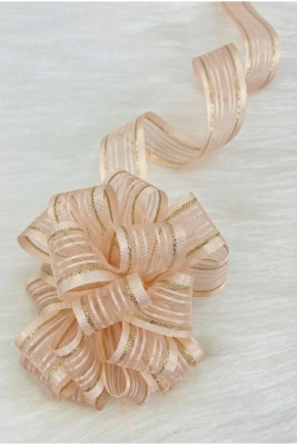 Çekmeli Şifon Kurdele Yavruağzı Gold Sim 2,5cm 20mt, Gelin Bohça Çeyiz Nişan Hediye Parti Süsleme