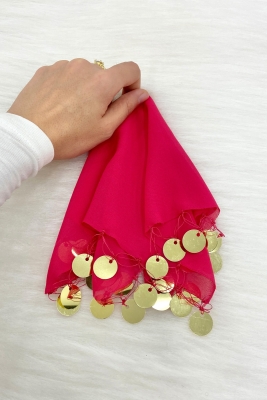 Fuşya Gold Şifon Halay Mendili 5 Adet, Gelin Damat Düğün Kına Sünnet Nişan Bride