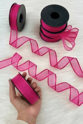 Fuşya Şifon Kurdele 2,5 cm 20 mt, Gelin, Damat, Bohça, Nişan, Çeyiz, Özel Gün, Hediye, Süsleme