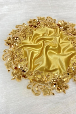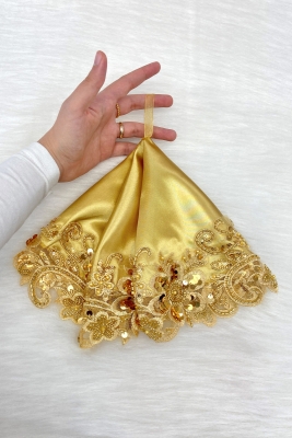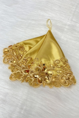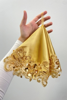 Gold Gelin Damat Mendili, Işıl Işıl Pul Ve Boncuk İşlemeli, Düğün Kına Sünnet Söz Nişan Halay