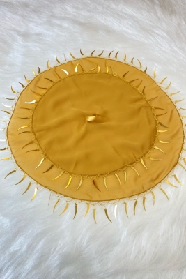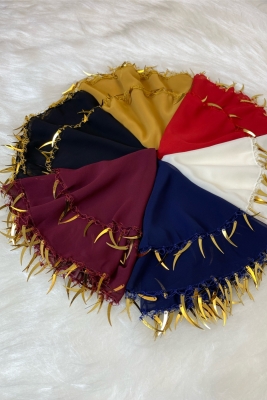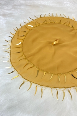 Gold Gelin Halay Mendili, Çift Katlı Şifon Kumaş Kılıç Pullu Mendil 50cm