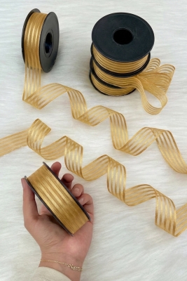 Gold Hilton Çizgili Şifon Kurdele 2,5 cm 20 mt, Gelin, Damat, Bohça, Nişan, Çeyiz, Hediye, Nikah