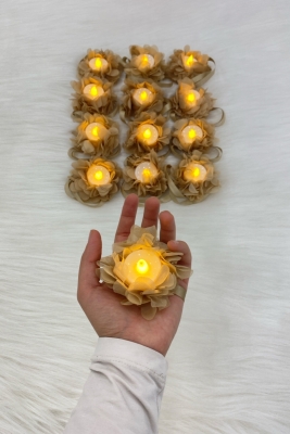Gold Ledli Kına El Mumu, Düğün, Nedime, Bride, Sünnet, Led Işıklı, Tealight Mum Pilli 12 Adet
