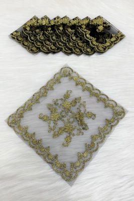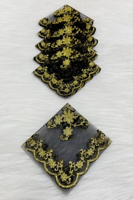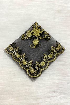 Gold Simli Gelin Damat Halay Mendili, Siyah 1 Adet, Düğün Kına Sünnet Söz Nedime Nişan