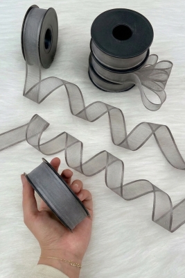 Gri Şifon Kurdele 2,5 cm 20 mt, Gelin, Damat, Bohça, Nişan, Çeyiz, Özel Gün, Hediye, Düğün, Süsü