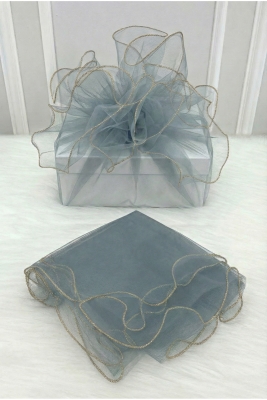 Gri Süsleme Tülü Gold Kenarlı, Bohça Çeyiz Gelin Damat Söz Nişan Nikah Valiz Hediye Süsü 100x100cm